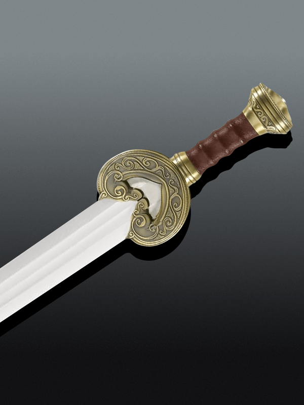 • The hilt is a cool leather wrap with a gorgeous brass color finish. A beautiful pommel stands out in strong, solid metal.