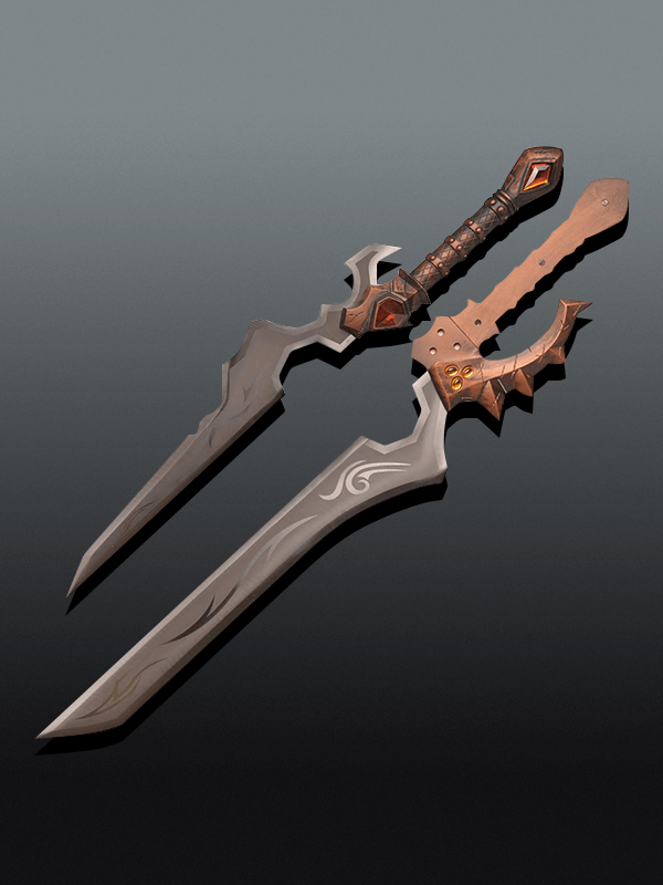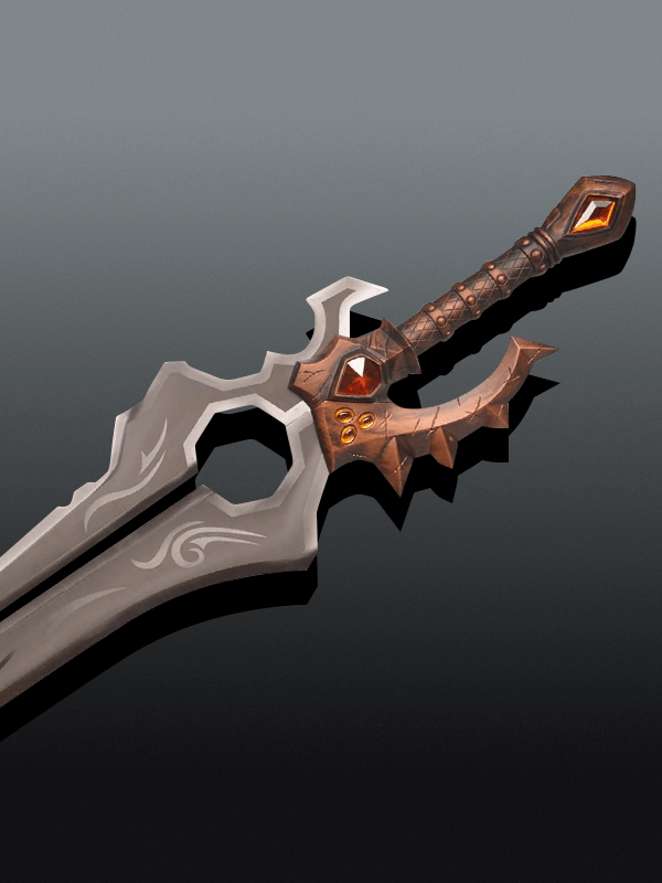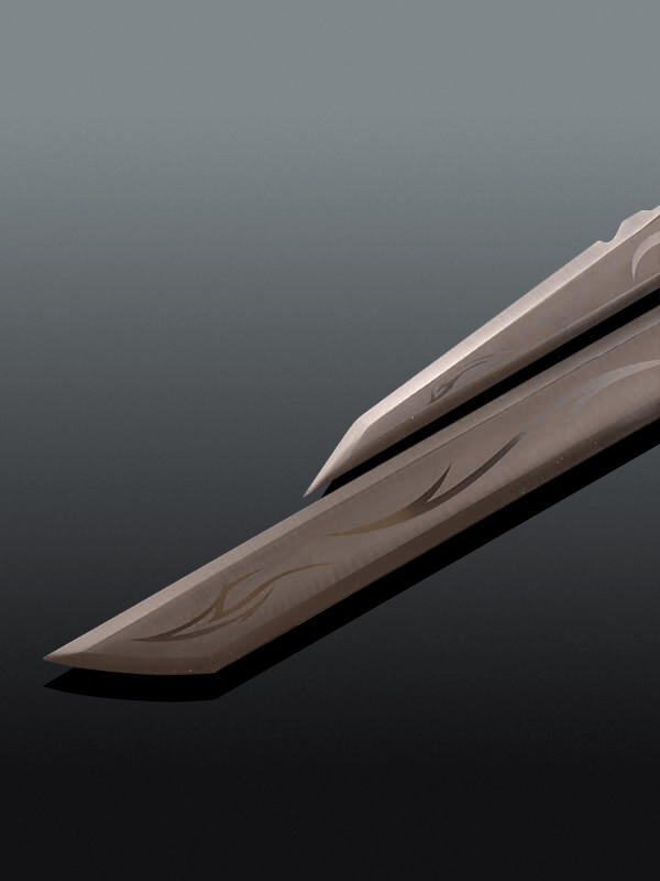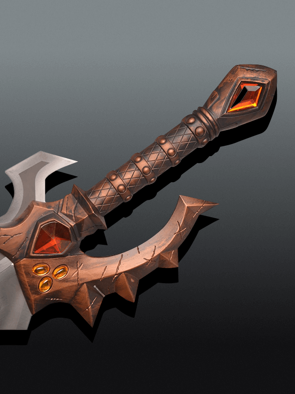 This Shalamayne Replica Sword perfectly captures that legacy, featuring the same split double-edged blade with intricate engravings and a metallic sheen that reflects the essence of both light and shadow. The golden-bronze hilt is accented with fiery red gems and jagged ornamental spikes, representing the dual nature of the weapon — elegance and power in perfect harmony. Designed with precision and artistry, this sword feels alive with the energy of the World of Warcraft universe.